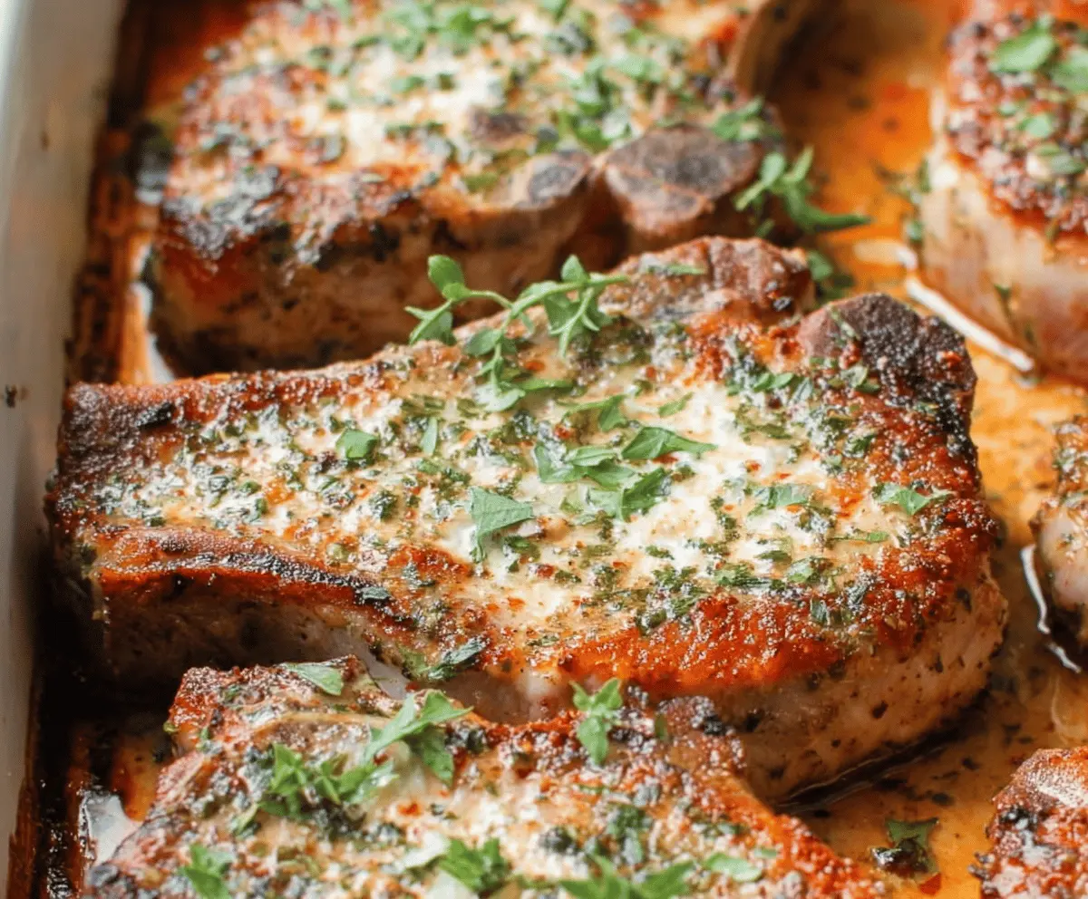 Remove the pork chops from the oven and let them rest for 5 minutes. This step helps the juices stay inside and keeps the meat tender. Before serving, sprinkle with fresh chopped parsley for a bright, fresh touch.