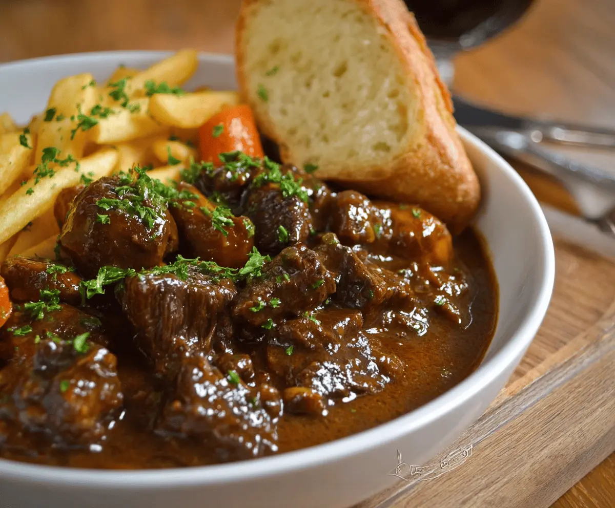 Belgian style Slow cooked Beef Stew is a hearty and comforting dish that brings tender chunks of beef together with rich flavors like dark beer, aromatic herbs, and root vegetables. The slow cooking process makes the beef melt in your mouth while the sauce becomes thick and deeply flavorful. It reminds me of those chilly days when you just want something warm and satisfying to fill you up.