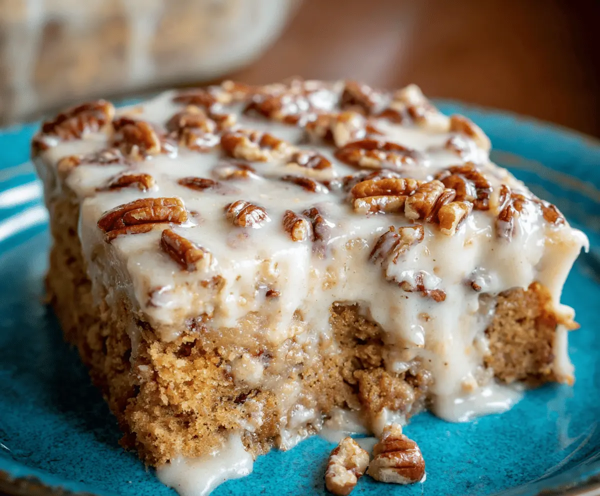 This step turns a simple cake into a rich, buttery dessert that’s soft inside with crunchy pecans on top.