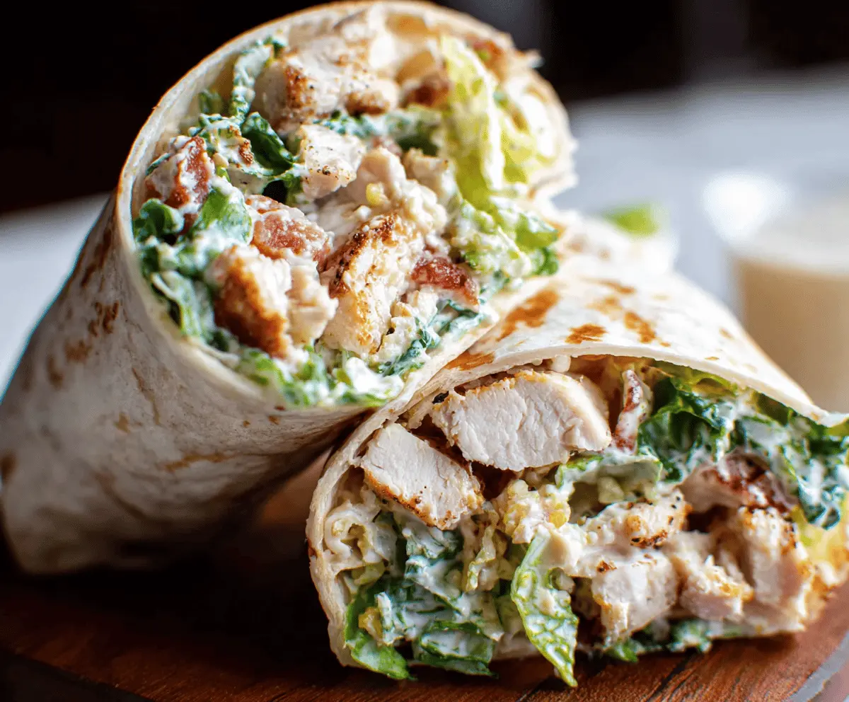 The Chicken Caesar Wrap is a fresh and tasty mix of grilled chicken, crunchy romaine lettuce, creamy Caesar dressing, and a sprinkle of parmesan cheese, all rolled up in a soft tortilla. It’s a simple take on the classic Caesar salad but made portable and perfect for meals on the go or a quick lunch.
