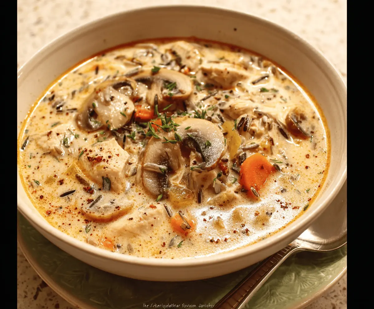 Creamy Mushroom Chicken and Wild Rice Soup is comfort in a bowl. It brings together tender pieces of chicken, earthy mushrooms, and nutty wild rice all swimming in a rich and creamy broth. It’s the kind of soup that feels homemade and makes you want to cozy up with a warm blanket on a chilly day.