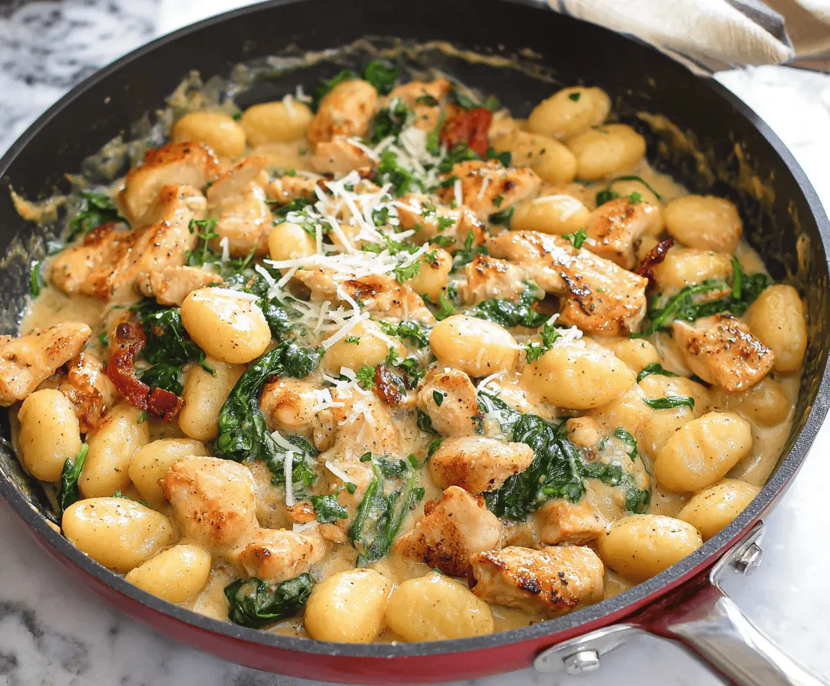 I love making this when I want something comforting but don’t want to spend hours in the kitchen. The gnocchi get crispy and chewy at the edges, which adds a fun texture alongside the juicy chicken. I always find myself sneaking a few bites right from the pan before it even hits the table. A sprinkle of fresh parsley or Parmesan on top really finishes it off nicely.