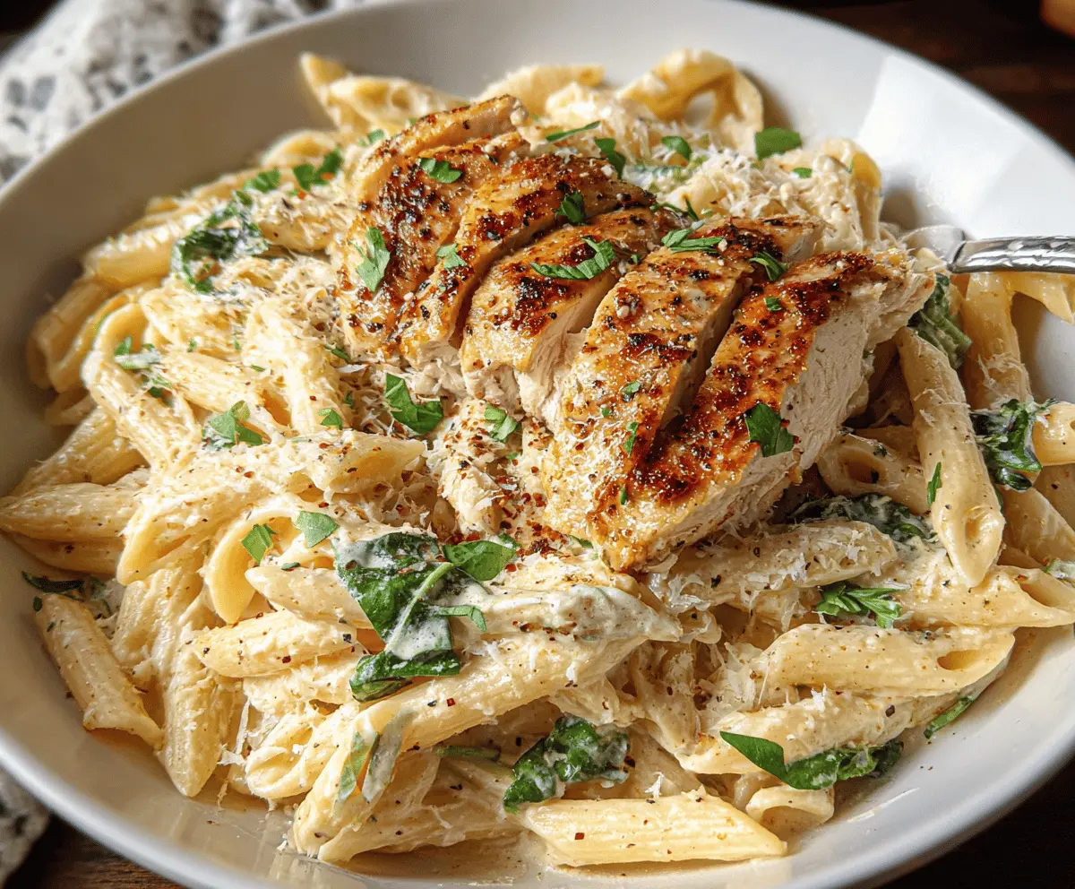 Garlic Parmesan Chicken Pasta is a simple and delicious dish that combines tender pieces of chicken with a creamy garlic and Parmesan cheese sauce. The pasta soaks up all the tasty flavors, making every bite rich and comforting. It’s a wonderful mix of creamy, cheesy, and garlicky goodness with just the right amount of seasoning.