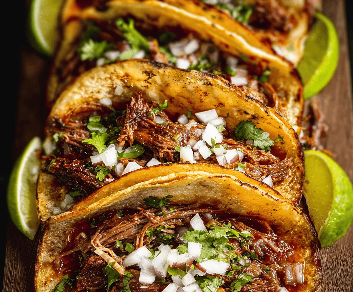 These tacos are perfect for a casual dinner or a fun gathering with friends. I like to serve them with some fresh onions, cilantro, and a squeeze of lime on top. Plus, having plenty of that warm birria broth on the side makes the meal that much cozier. Every time I make these, it feels like a small celebration right at the dinner table!