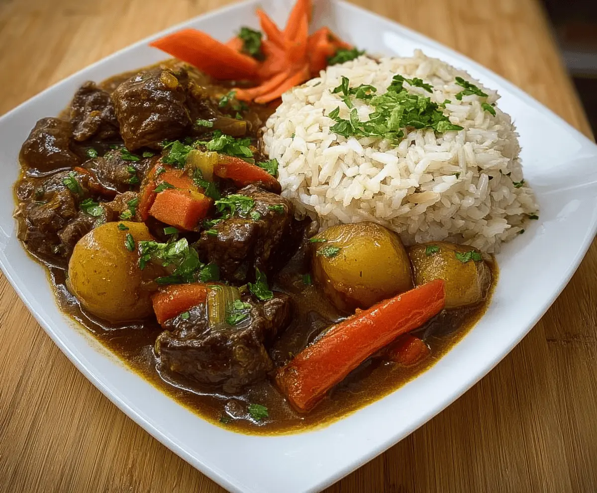 I love making this stew when I want something that feels special but still easy to prepare. The way the beef slowly cooks until it’s melt-in-your-mouth tender is one of my favorite parts—plus, the sauce thickens up nicely and soaks into the rice, making each spoonful so tasty. I always recommend letting the stew sit for a bit before serving because the flavors really get to know each other and come alive.