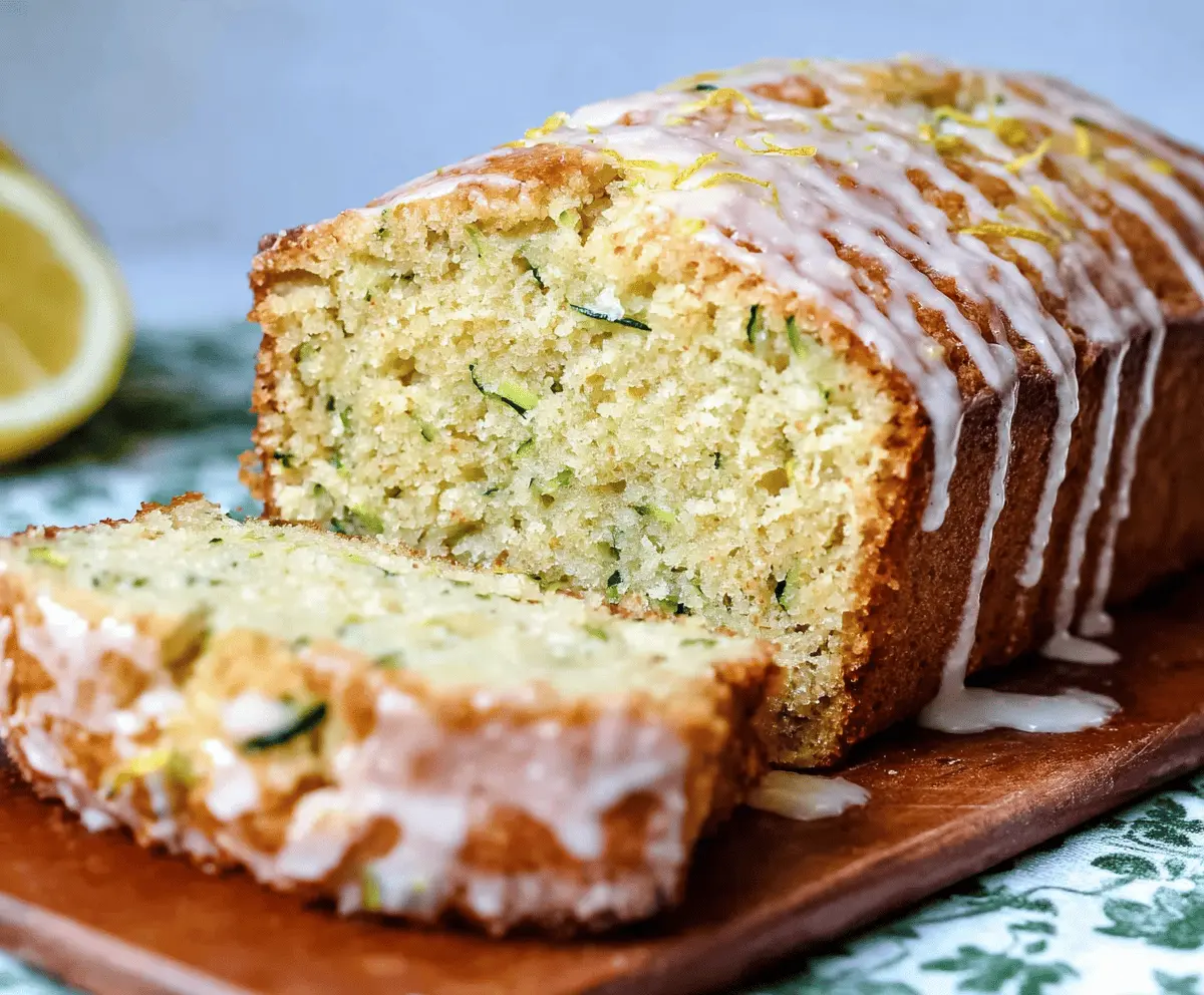 Delicious homemade lemon zucchini bread with a golden crust and fresh zucchini slices, perfect for a moist and flavorful treat