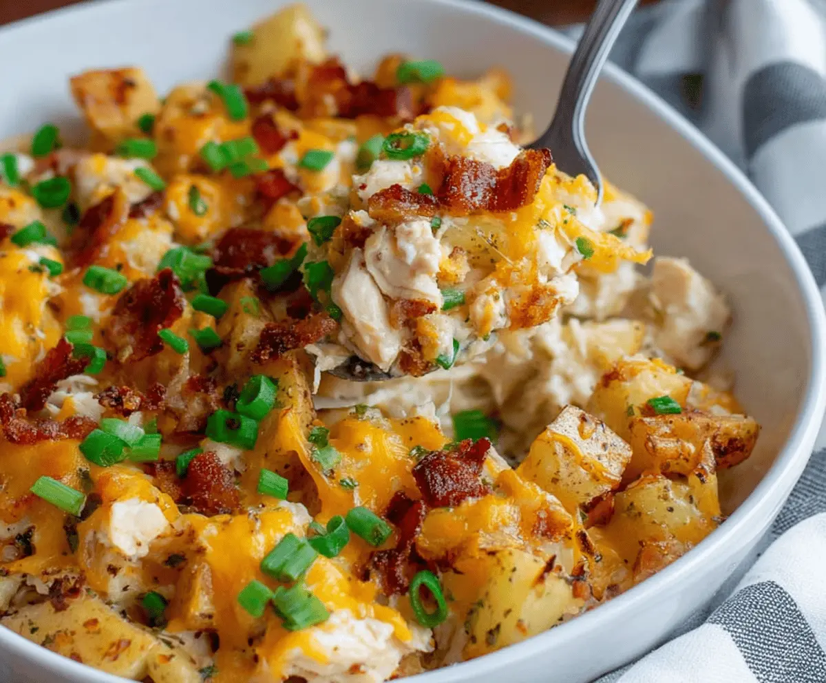 Loaded Potato Ranch Chicken Casserole is a family-friendly dish that brings comforting flavors together in one pan. It’s packed with tender chicken, creamy ranch seasoning, cheesy potatoes, and crispy bacon bits, making every bite warm and satisfying. There’s a lovely mix of textures with soft potatoes and melty cheese that just makes you want to keep going back for more.