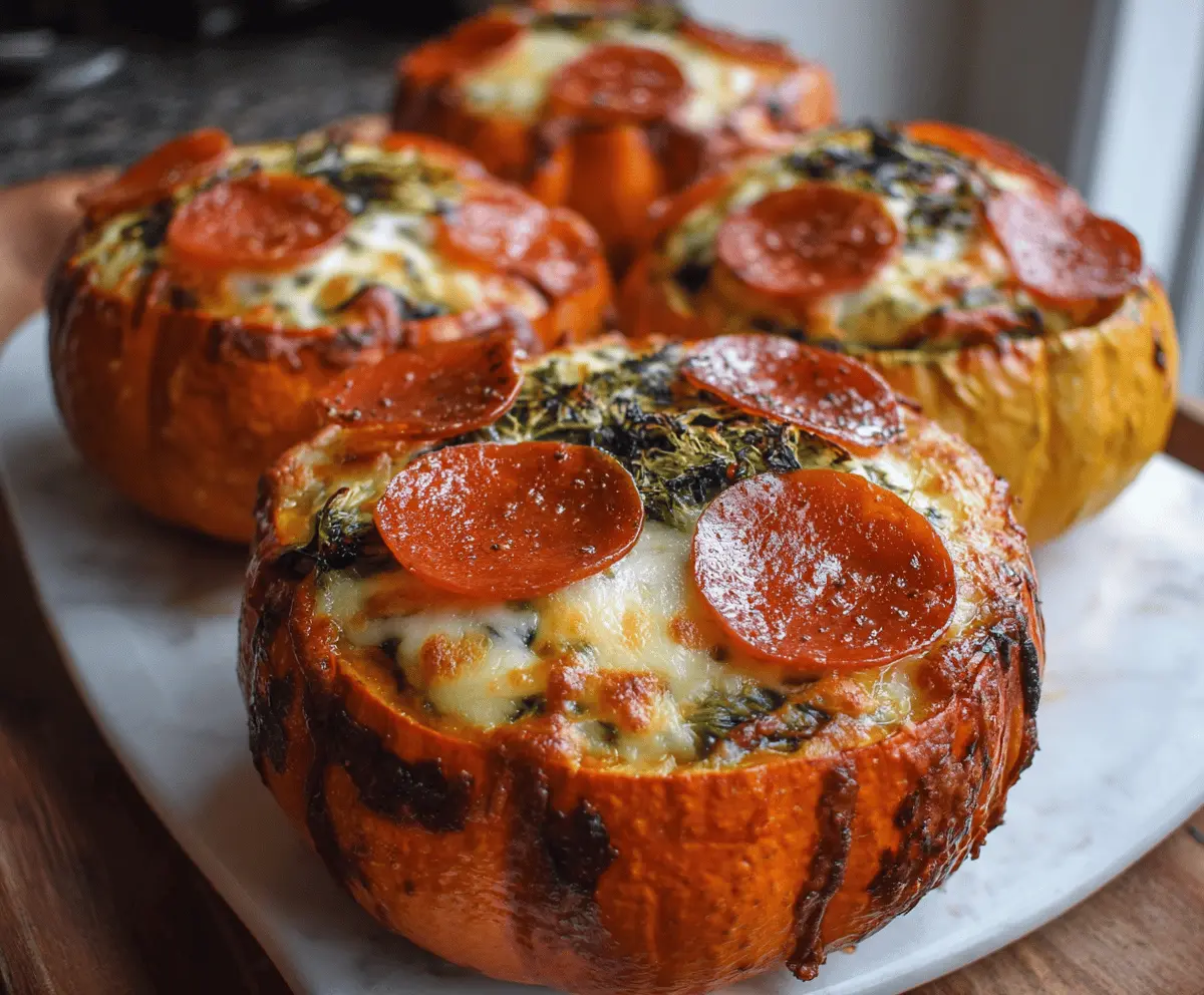 Pizza-Stuffed Pumpkins are a fun and tasty twist on two favorites: pizza and pumpkin! Imagine a small pumpkin hollowed out and filled with all your favorite pizza toppings like gooey cheese, tangy tomato sauce, pepperoni, and herbs, then baked until everything is hot, melty, and just a little crispy on top. The pumpkin adds a subtle sweetness and makes the dish feel a little special without being too heavy.