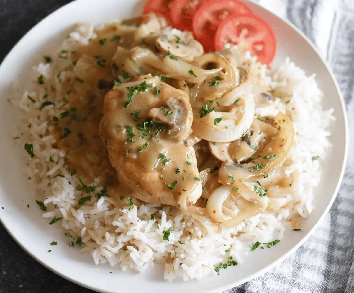 I love making this dish because it’s one of those meals that brings everyone to the table right away. The sauce is the star here—it’s thick, savory, and full of onion and garlic flavor that makes every bite feel special. If you have a slow cooker, it’s a lifesaver for this recipe, letting the chicken get nice and tender while the rice gets perfectly cooked without much fuss.