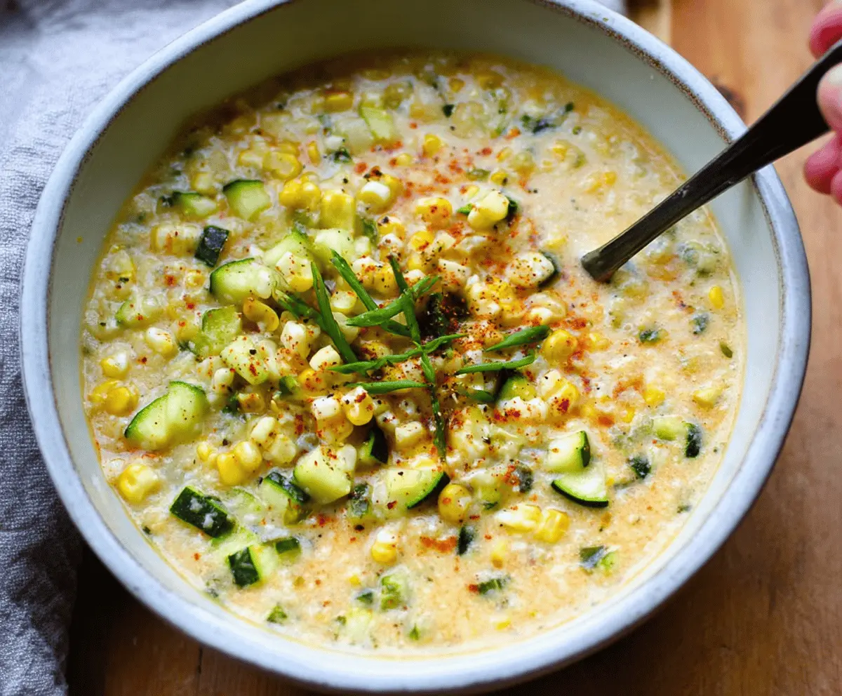 Zucchini Corn Chowder is a creamy and comforting soup packed with fresh summer flavors. The tender zucchini and sweet corn kernels come together in a rich, velvety broth that’s both satisfying and light. It’s the kind of dish that feels warm and cozy but still bright and fresh thanks to the veggies.